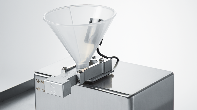 FRITSCH-Plus: A vibrating funnel, which is simply pushed onto the feeder, ensures uniform and homogeneous feeding of the sample.