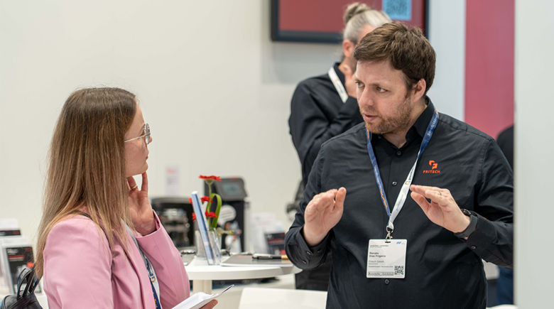 Discuta diretamente as suas tarefas e aplicações específicas com especialistas FRITSCH em feiras internacionais, já que fornecemos respostas a todas as perguntas acerca de preparação de amostras e análise de partículas. Só tem -de marcar uma sessão de aconselhamento ou visitar-nos diretamente num stand de feira FRITSCH.