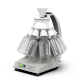 We recommend for this task the Rotary Cone Sample Divider LABORETTE 27 combined with the Vibratory Feeder LABORETTE 24. As a sample amount 100 g is assumed. The somewhat larger sample accommodates the representativeness and is the optimum amount for the fine comminution for obtaining the analytical fineness of the sample in the next mill.