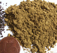 Green tea comminuted with the Variable Speed Rotor Mill PULVERISETTE 14 using a 0.08 mm sieve