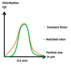 Comminuted were 100 g hops at 3000 rpm, with the new rotor with the notched edges made of hardened stainless steel, sieve cassette 0.5 mm trapezoidal perforation and high performance cyclone separator.