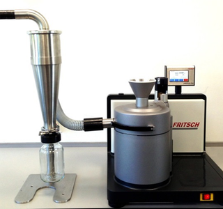 For the comminution of larger amounts into the kilo scale, the PULVERISETTE 14 premium line can be connected with the FRITSCH Vibratory Feeder LABORETTE 24 and with the Cylone Separator. After comminution, the sample is therefore directly and precisely transferred into the collecting vessel. Due to the increased air flow the sample and grinding parts are additionally cooled and the temperature of the system remains constantly below 65°C [6] – the critical temperature for β-glucan.