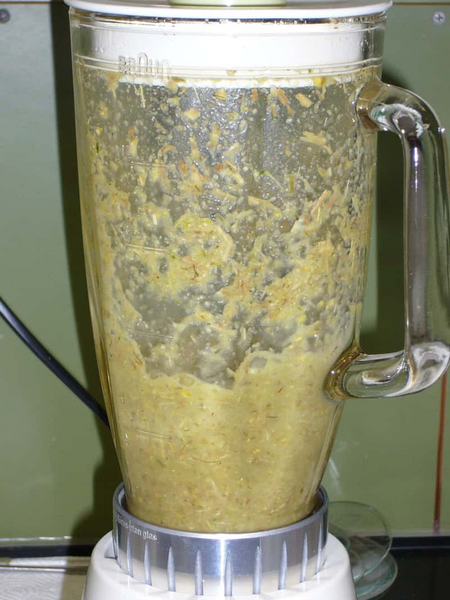 During the tests a buffer solution was added to the silage. Therewith the solids content was lowered. After four minutes the material was extremely well ground. Temperature readings were also in a normal range and therefore thermal damage was not to be expected. The established CSB values were clearly different though form the CSB values of the samples prepared with previous methods. It became therefore clear, that the processing of the samples has a significant influence on the test value of the chemical oxygen needs. Since it depends more on the comparability with the existing data rather than the absolute values, the preparation was matched to the previous mode.