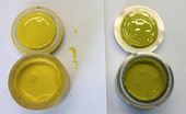 The picture is showing the bowls of result 1 in zirconium oxide (left), compared with the bowl, made of stainless steel (right). Abrasion of balls and bowl made of steel is discoloring the sample way stronger as in our result with zirconium oxide.
