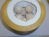 | Pictures: | Sticking sample became compressed by the grinding balls. A longer dry grinding is not recommended. |