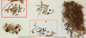 We took about 200 grams of sorted sample (equal to right and middle right pile in the picture page) and ground the particles with our Universal Cutting Mill PULVERISETTE 19 (a Power Cutting Mill PULVERISETTE 25 as desired is not suitable for grinding < 2 mm with most samples).