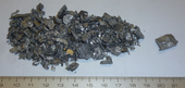 | Pictures: | Sample 31 after grinding with gap position 1,5. The sample gets ground a little thinner (about 5 mm and smaller), the longest particles passed the gap with ~ 15 mm length. |