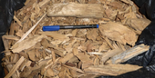 | Sample which was ground with 1,0 mm sieve cassette; some fragments can pass the trapezoidal perforations longitudinal. Even with 0,5 mm sieve cassette, we expect to find > 1 mm long pieces of sample in the 10-L collecting vessel. |