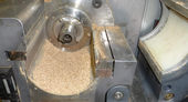 Opened grinding chamber after 500 grams of sample got comminuted. Only a minimal residue uses to be left in the grinding chamber. |
