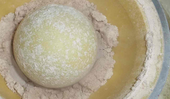 The pre crushed and embrittled sample was fed slowly. Within 45 seconds, the 20 grams of embrittled sample has been ground. Also this kind of chocolate was ground successfully. On the outside of the used sieve ring, again melted chocolate could be found.