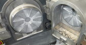 We opened the grinding chamber; ribs and rotor were only slightly polluted. Surely higher amounts of sample could be ground this way. A bit of ground sample remained below the grinding insert and could be brushed off rapidly to maximize the output. Without brushing out, we found almost 84 grams of ground sample material inside the collecting vessel.