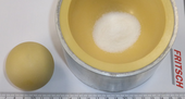 | Pictures: | The start conditions: 6 grams PCL sample inside the mortar made of zirconium oxide. |