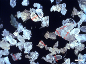 | After 30 minutes of grinding, still a lot of coarser samples fragments were found. The max. size was > 500 µm. |