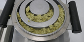 | Desired Universal Cutting Mill PULVERISETTE 19 could be used for comminution, but with limited results in behalf of fineness. We would recommend to use a Vibrating Cup Mill PULVERISETTE 9 with 2 large grinding sets (see result 01). |