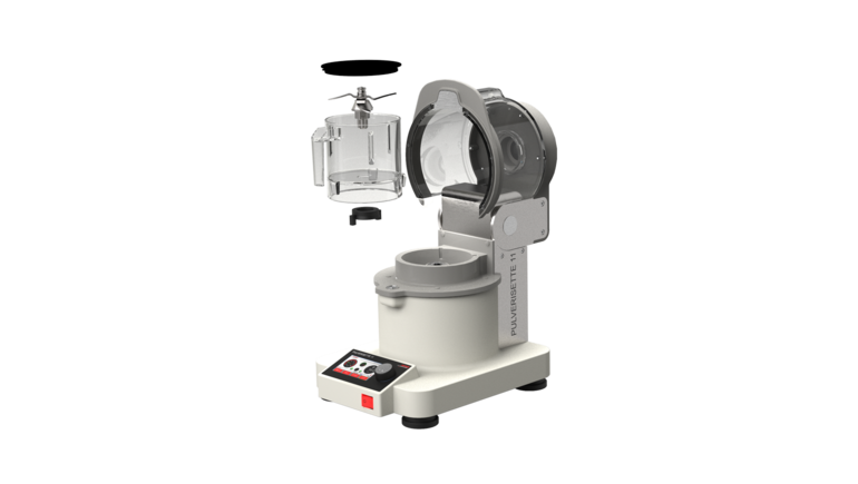 The quietly operating Knife Mill PULVERISETTE 11 is the ideal laboratory mixer in industry quality for very fast and gentle comminution and homogenisation of moist, oily and fatty as well as of dry, soft, medium-hard and fibrous samples within seconds. The up to 1250 watt strong motor of the PULVERISETTE 11 and its special knife, fitted with four blades, grinds fast and gentle problematic samples with high fat or water content such as meat, gummi bears, chocolate or also hard samples such as dishwasher tabs or toys. This makes it a perfect all-rounder with many advantages for sample preparation in the fields of foodstuffs or animal feed testing, pharmaceuticals and chemistry and many other applications.