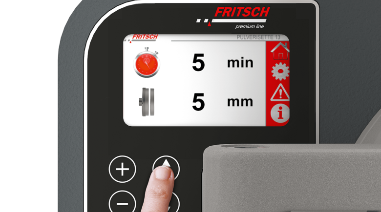 The premium model of the FRITSCH Disk Mill for efficient fine grinding of hard-brittle to medium-hard solids: Even safer due to the automatic locking of the collecting vessel and grinding chamber, even easier to operate due to the convenient motor-driven grinding gap adjustment with digital gap display. A well-designed display shows all of the parameters.