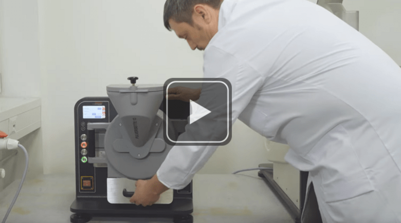 The grinding chamber is locked at the push of a button and the grinding gap and grinding time are set precisely and to the second using the plus/minus keys on the digital display. Fill the sample into the easily closable funnel and start grinding. The last setting is saved and can accessed directly for the next grinding.