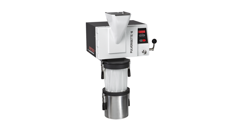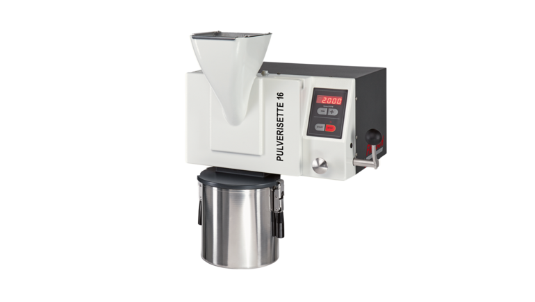 With a freely adjustable rotor speed of 2,000 – 4,000 rpm, the FRITSCH Cross Beater Mill PULVERISETTE 16 is the ideal universal mill for fast and gentle pre-crushing and fine-grinding of medium-hard, brittle materials up to a Mohs hardness of 6 in laboratories, pilot plants and industry.